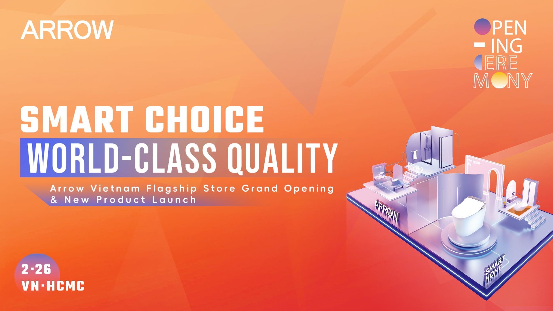 On February 26, Arrow’s first Vietnam flagship store grandly opened in Ho Chi Minh City. Spanning 1,000 square meters, the store features immersive experience-based layouts, simulating real home environments. Besides, Arrow hosted a grand product launch event under the theme "Smart Choice, World-Class Quality," unveiling a range of new smart bathroom products. This milestone marks the official launch of Arrow’s strategic expansion in the Southeast Asian market, offering an immersive shopping experience for overseas consumers.